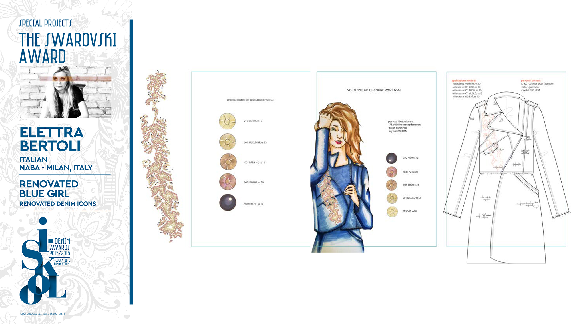 The prestigious partnership between I-SKOOL™ and Swarovski continues and is now in its third year. In fact, Swarovski has been among Supporting Partners of ISKO I-SKOOL™ Awards since its first edition in 2013-2014, holding a special contest that inspires the students to create unique denim garments using the famous crystals as elements that add value and creativity to the denim world.