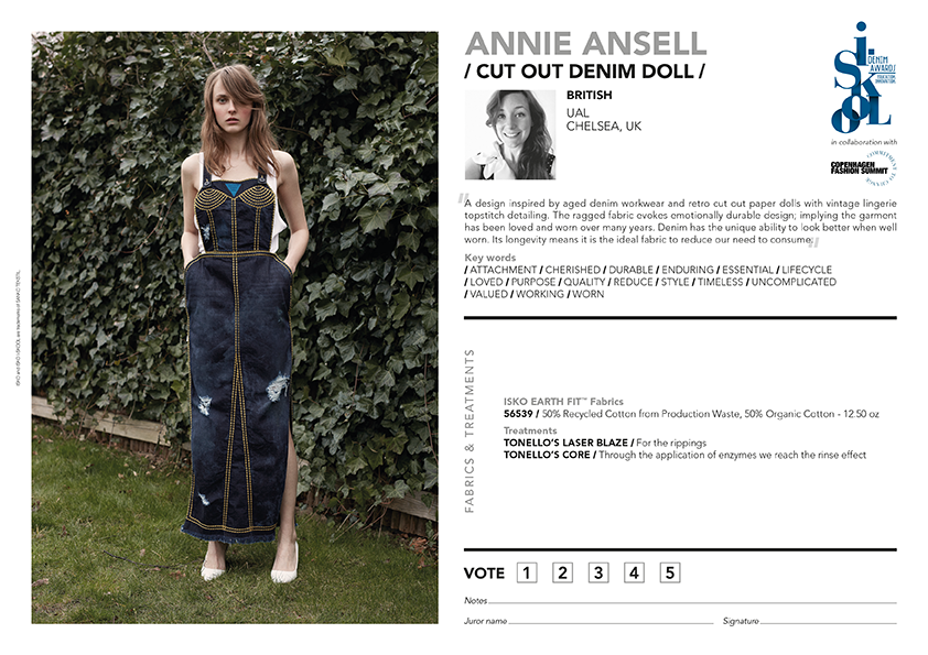 In fact the special contest held at Copenhagen Fashion Summit was not a simple replica of the 2016 show, because the young designers have been asked to re-thought their designs under a more conscious approach, using for this very special task the concepts from ISKO EARTH FIT™, the green fabrics and concepts platform by ISKO™ that has already received, for several products, two important recognitions such as the Nordic Swan Ecolabel and the EU Ecolabel, being at the moment the first and only denim mill in the world having received these crucial certifications.